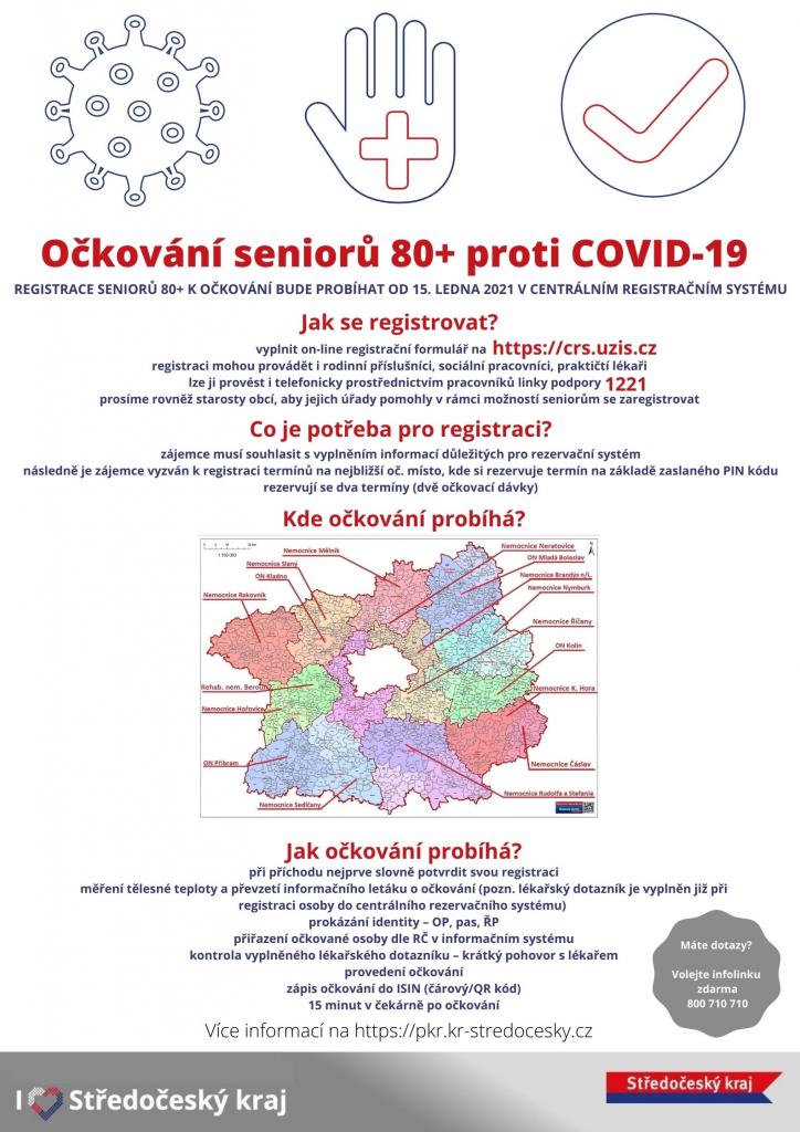 Prosíme rodinné příslušníky občanů starších 80-ti let, aby svým příbuzným s registrací pomohli, případně je možné se obrátit na bezplatnou linku 1221, na praktického lékaře nebo Vám rádi s registrací pomůžeme na Obecním úřadě na tel.čísle 325 552 424 po-čt 8:00-16:00, pá 8:00-12:00.